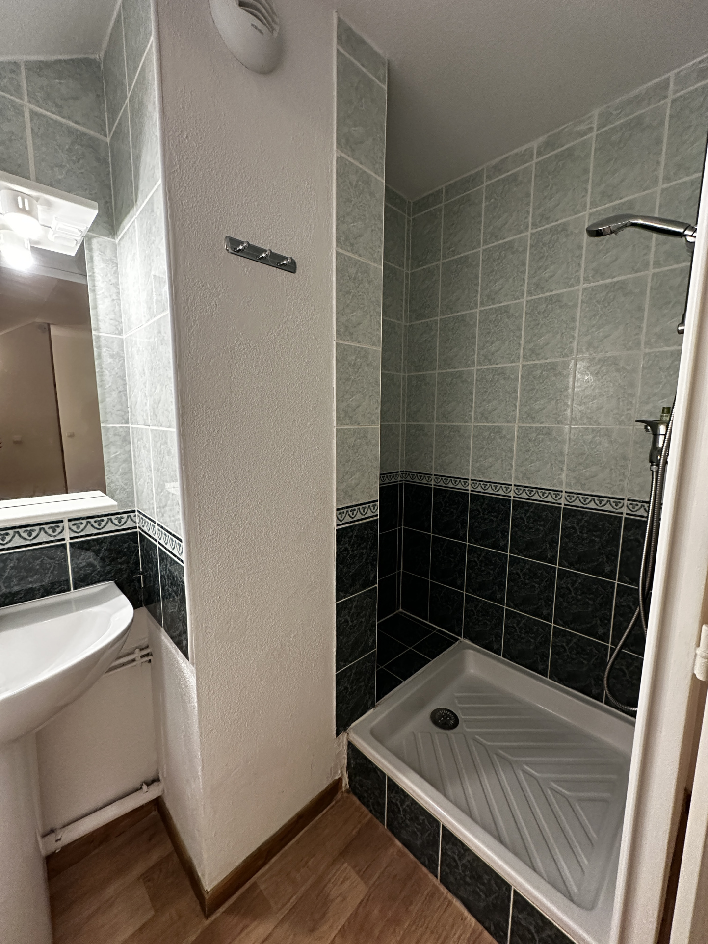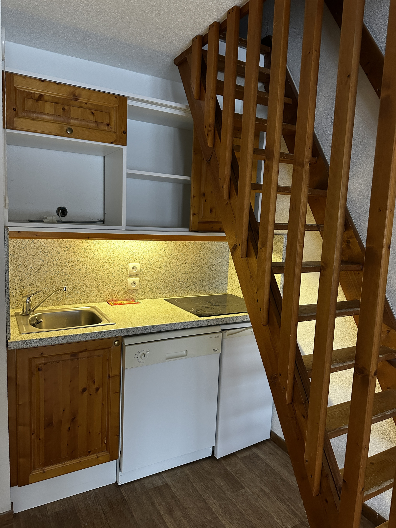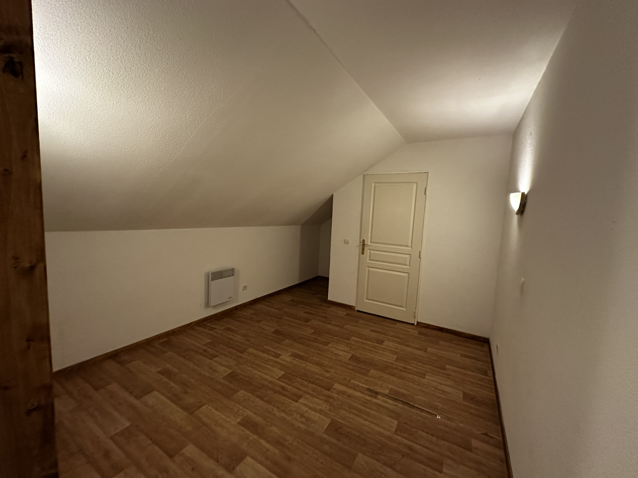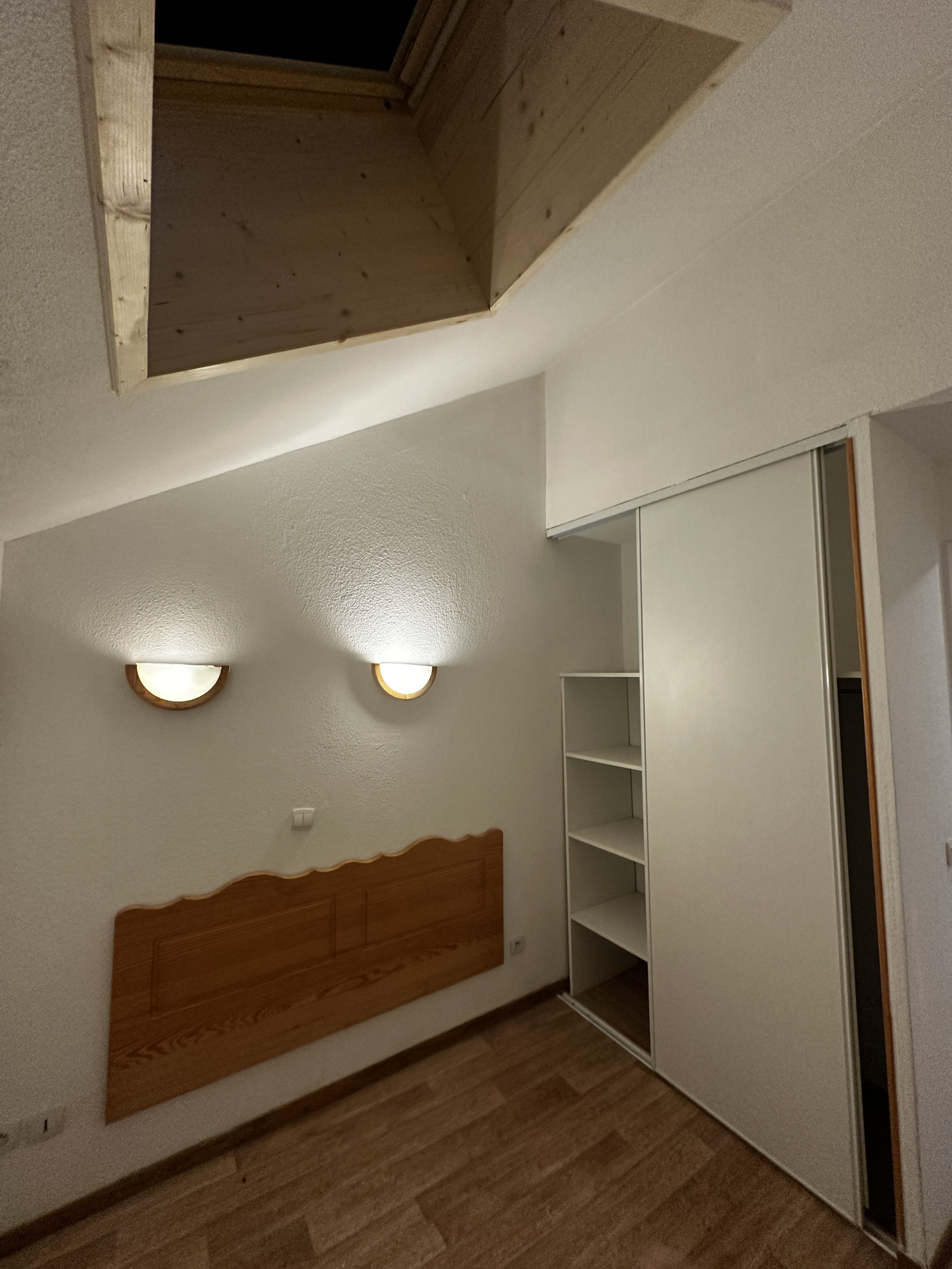 Duplex comprenant une entrée avec rangement, une chambre, une salle de bains, un Wc séparé, d'un séjour avec cuisinette et d'un escalier amenant à l'étage supérieur où se trouve une grande chambre en mezzanine et sous les toits avec une salle d'eau. Ce bien est vendu vide de mobilier.
