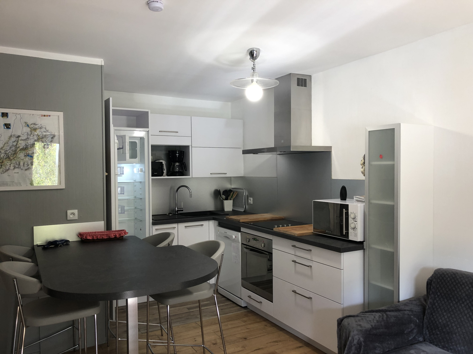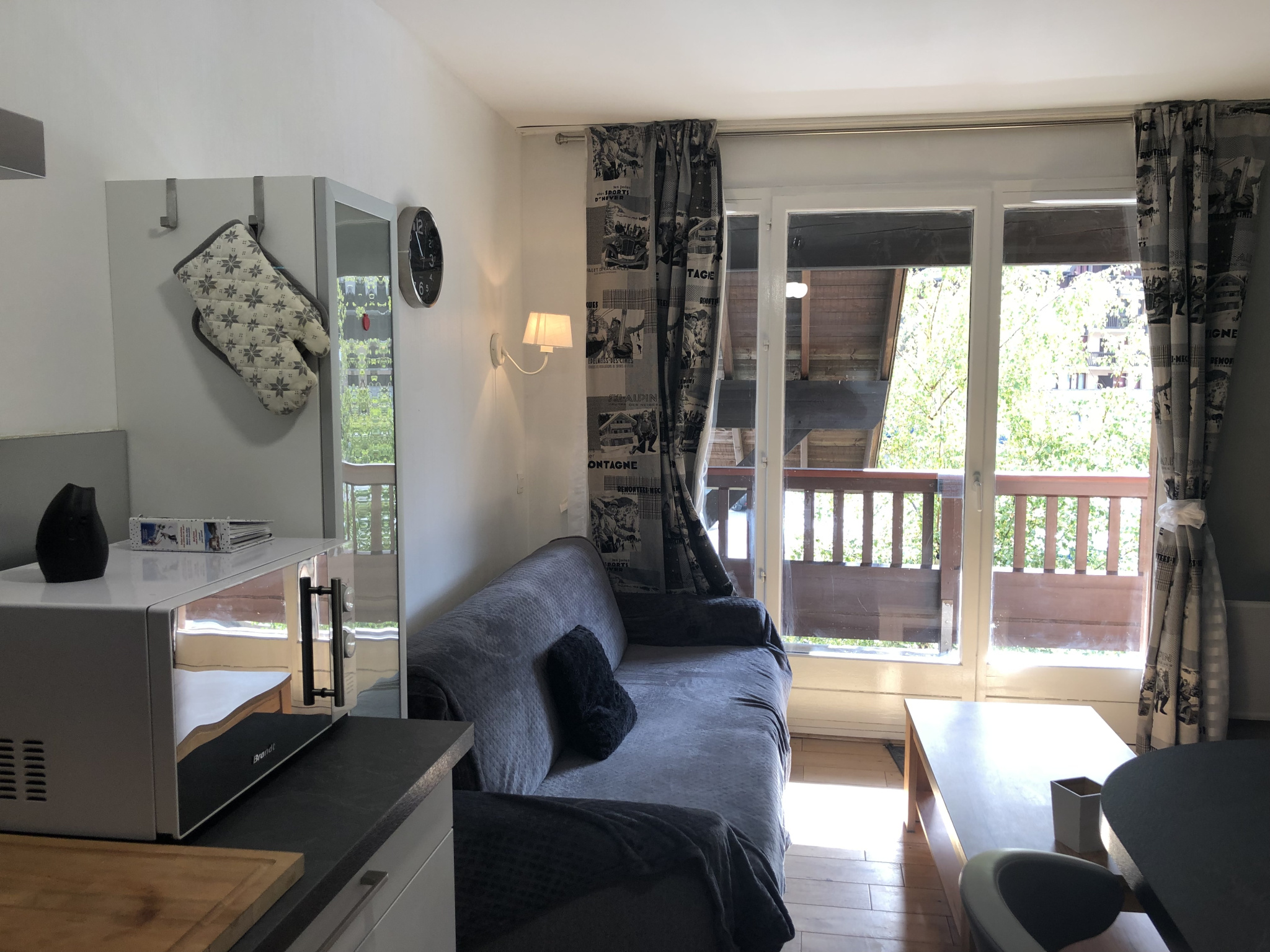 L'appartement duplex de 42,47m2 (Loi Carrez) comprend une entrée avec rangements, un séjour avec cuisine aménagée donnant sur un balcon de plus de 7 m2, une chambre cabine, une salle d'eau avec WC, un escalier intérieur amenant à l'étage supérieur vers une chambre, une salle de bains, un WC séparé et des combles aménagées pour une superficie totale de 54,69 m2 (au sol). Un casier à skis au niveau 1 de la résidence donne un accès direct aux pistes de ski.