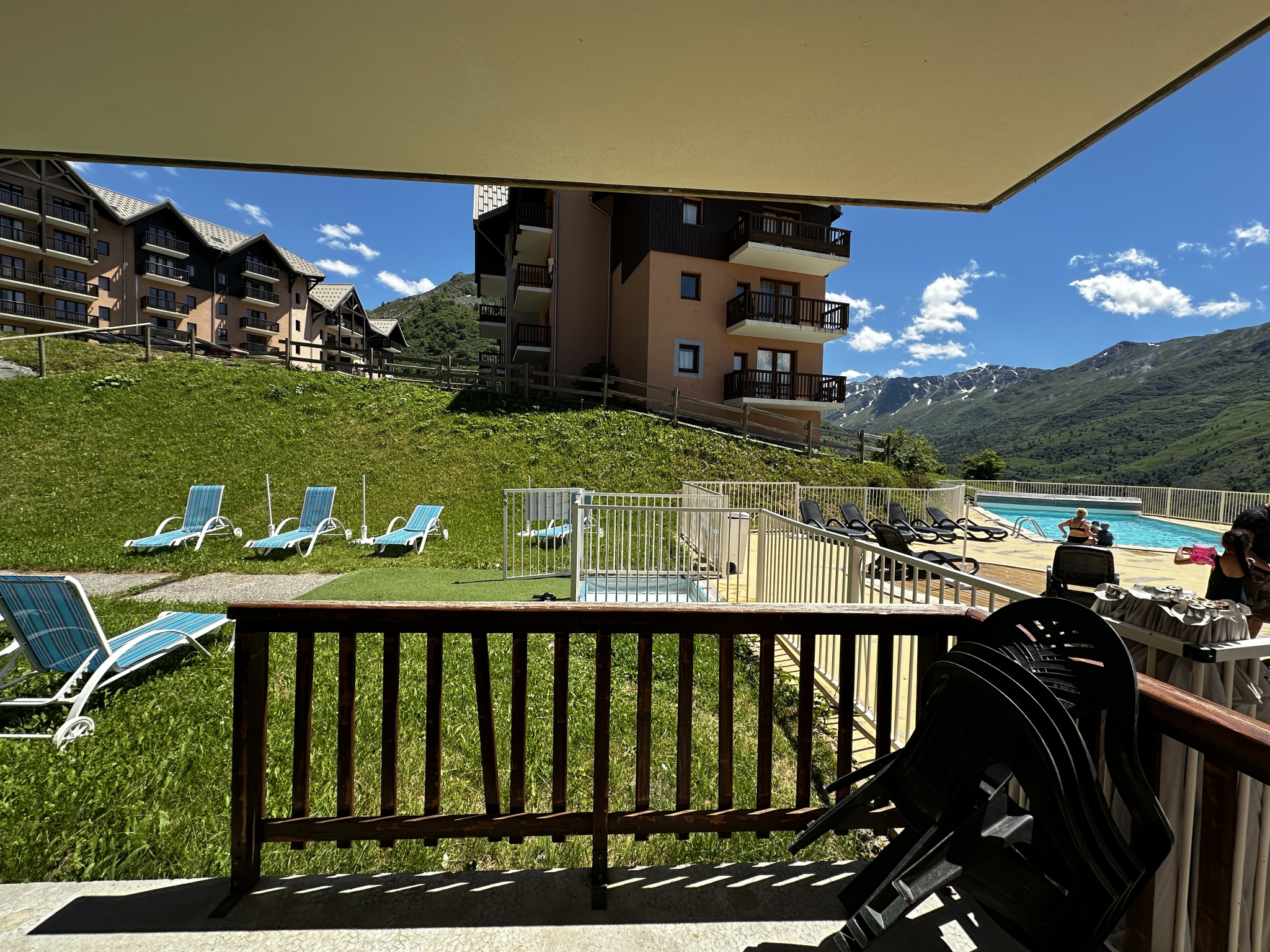 Dans une résidence avec une piscine d'été à Valmeinier 1850, ces deux appartements distincts sont reliés par un couloir à usage privatif. Ils sont situés au Rez-de-jardin de la résidence.